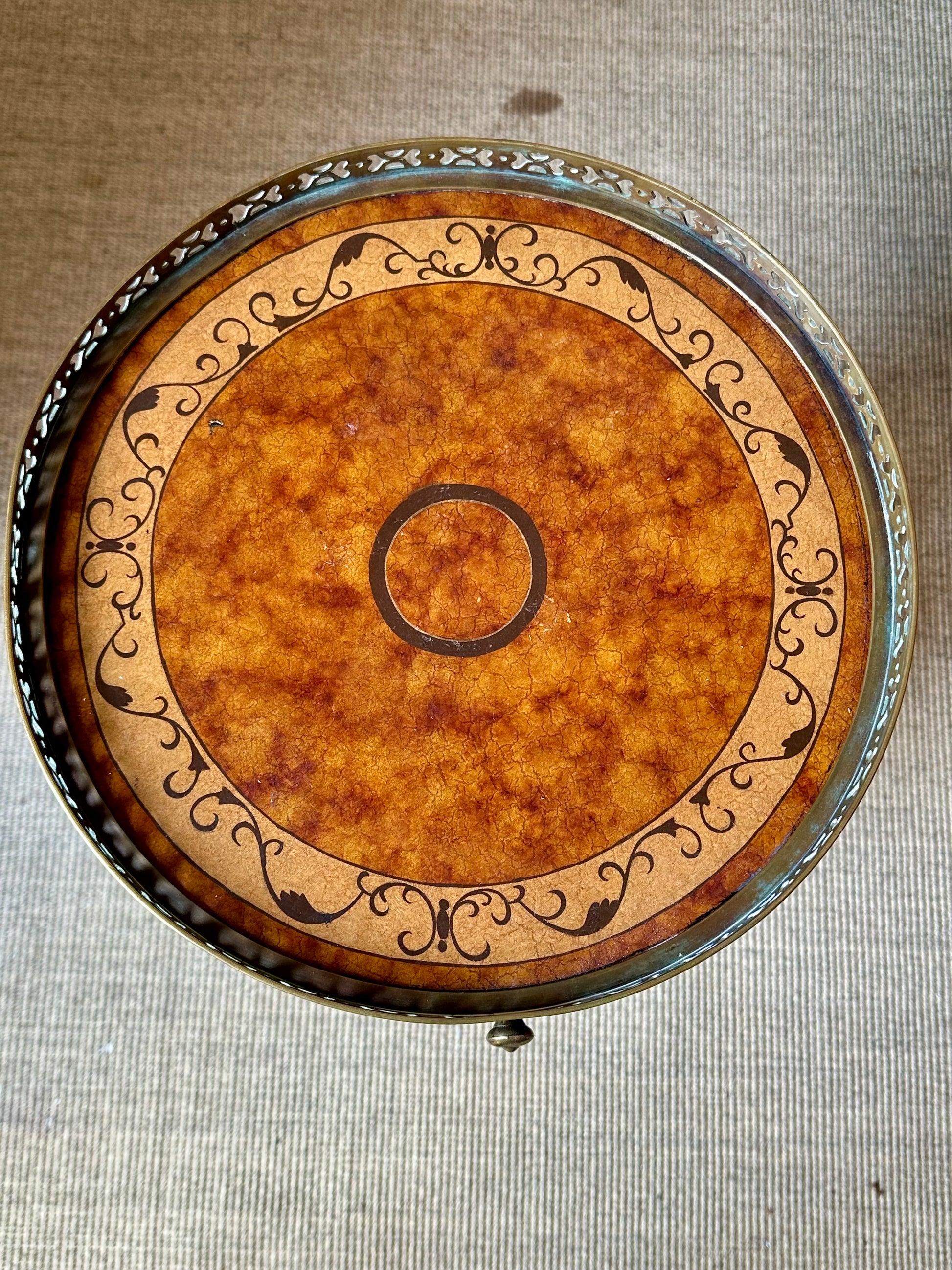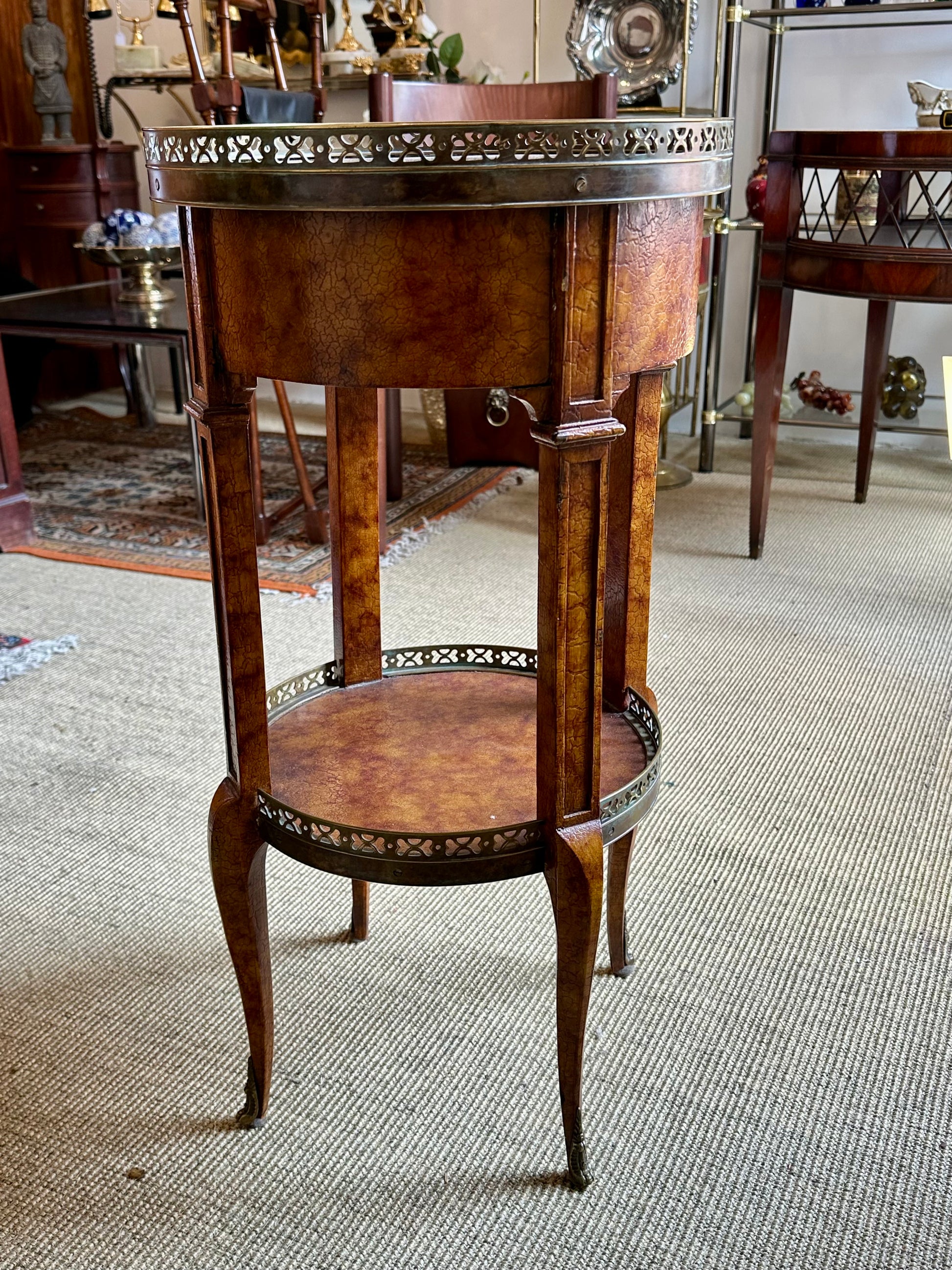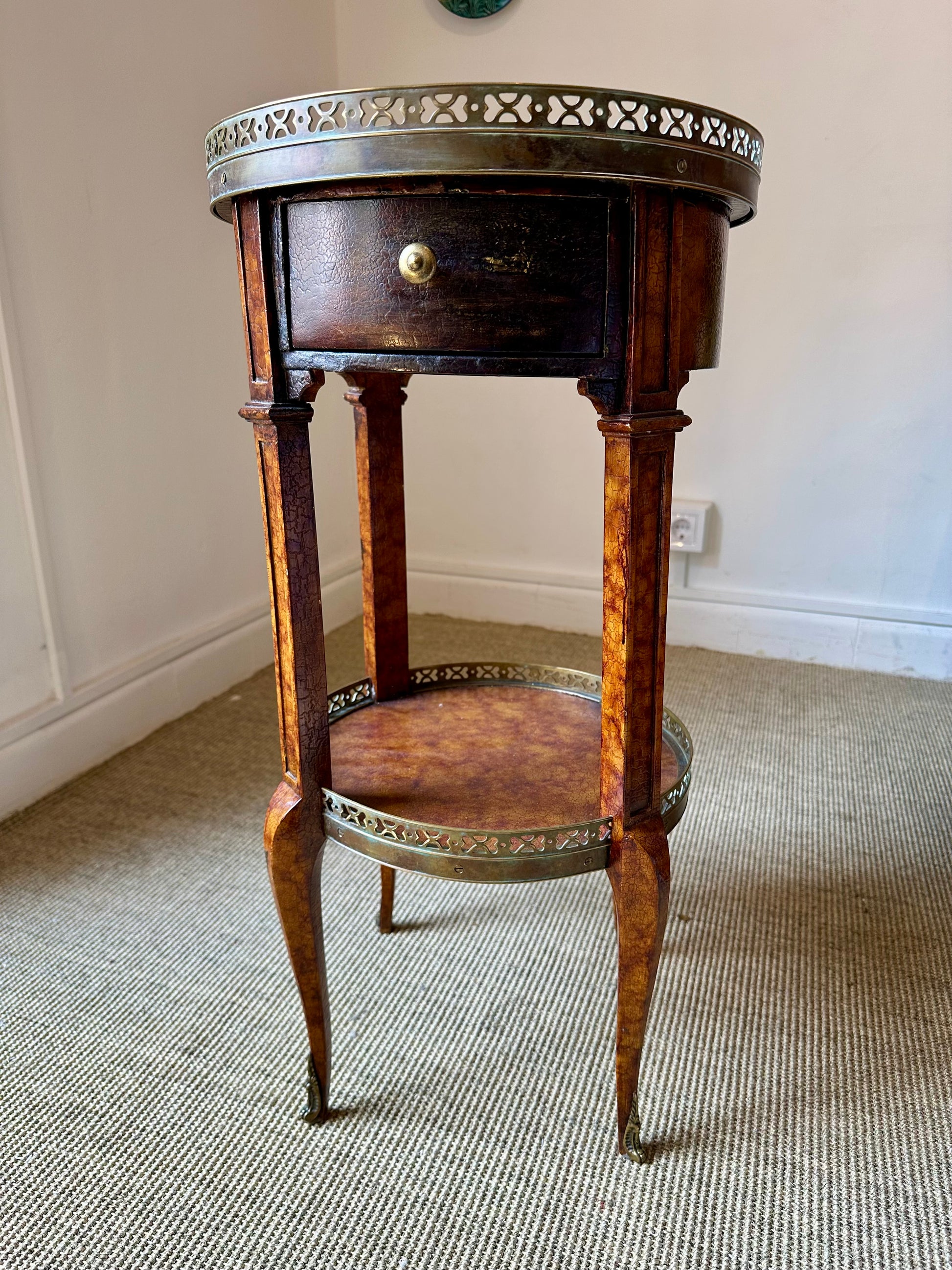 Mesita Auxiliar Vintage Luis XVI - Redonda con Galería Metálica Calada